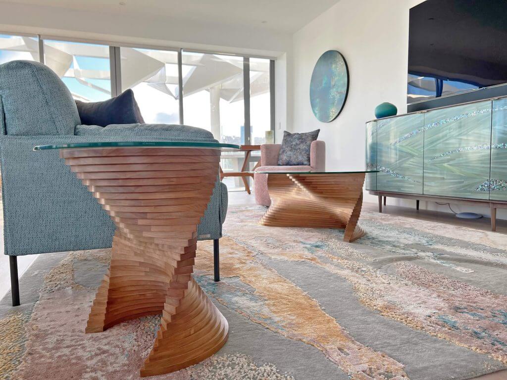 Rewind 7 days and I’d just woken up on a Sunday morning to an email from a certain Jon Landau regarding commissioning my coffee table, Sidewinder. Was this the real Jon Landau, the producer of Titanic and Avatar, or an elaborate scam? No sooner had I read the email, the phone rang and a charming gentleman with an American accent, informed me that it was Jon and he was keen to proceed with the order. It was for his new apartment in New Zealand and by the next day he had placed an order for Sidewinder II, Aguaviva and Genie.