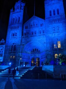 We were then ferried across London to the National History Museum for the after-party. I’d never been to the Museum before so arriving at this beautiful, ornate, Victorian building, lit up in a marine blue was truly something to behold.